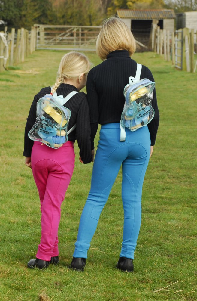 Junior-sized children’s Horse Grooming Kit With Backpack Includes Dandy Brush, Body Brush, Plastic Curry Comb, Hoof Pick Brush, Mane Comb, and Wash Sponge