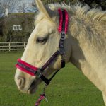 Nylon control head collar with trigger clip throat latch. Padded fur headpiece and noseband. Star embellished cheekpieces and noseband with crystal detail. Supplied with two tone matching cotton lead rope.