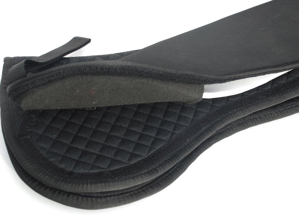 The upper side of the black saddle pad has an additional shock-absorbing chloroprene rubber pad for additional comfort and touch tape closure girth attachment straps for for secure placement. With touch tape fastening around the entire top edge, correct positioning of the additional pads is easy. A perfect, individual and unique positioning of the saddle can be achieved with the 6 insertion pockets and 8 interchangeable pads.