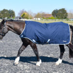 This exercise rug has a windproof/showerproof outer with breathable nylon quilted lining. Front buckle and cross over surcingles for stability. Cut away shoulder design for freedom of movement.