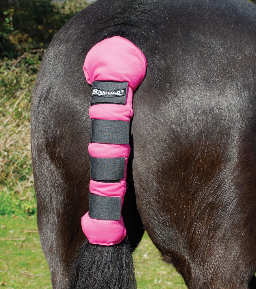 Soft cotton, breathable quilted horse tail guard with elasticated touch tape fastenings for comfort and security.