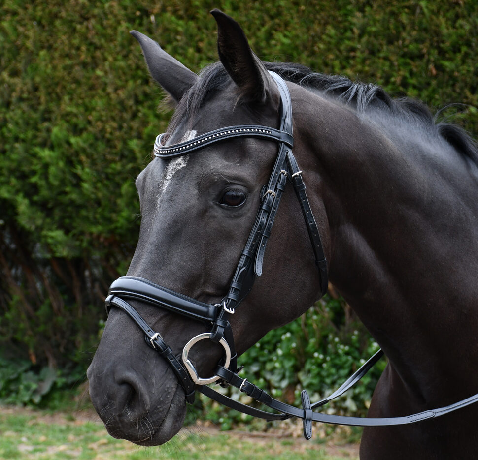 The anatomically shaped headpiece has been designed to distribute pressure over the less sensitive areas away from the ears. A modern twist on the classic bridle that is available in four different variants ( Snaffle, Flash, Mexican and Double) to allow full versatility in this range.