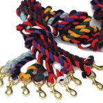 Standard cotton lead ropes for horses, with brass trigger clip.