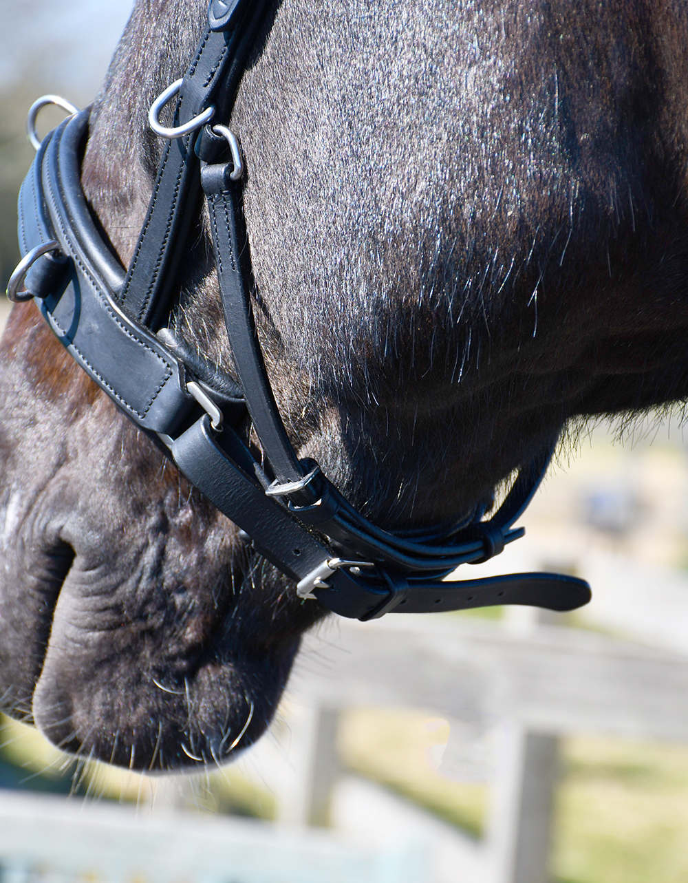 Soft Leather Lunge Cavesson with an anatomically curved and super soft headpiece. The entire cavesson is lined with soft leather with a crank noseband for adjustment, there is a chin strap for security with the side cheeks clipping on/off for a Bit if required.