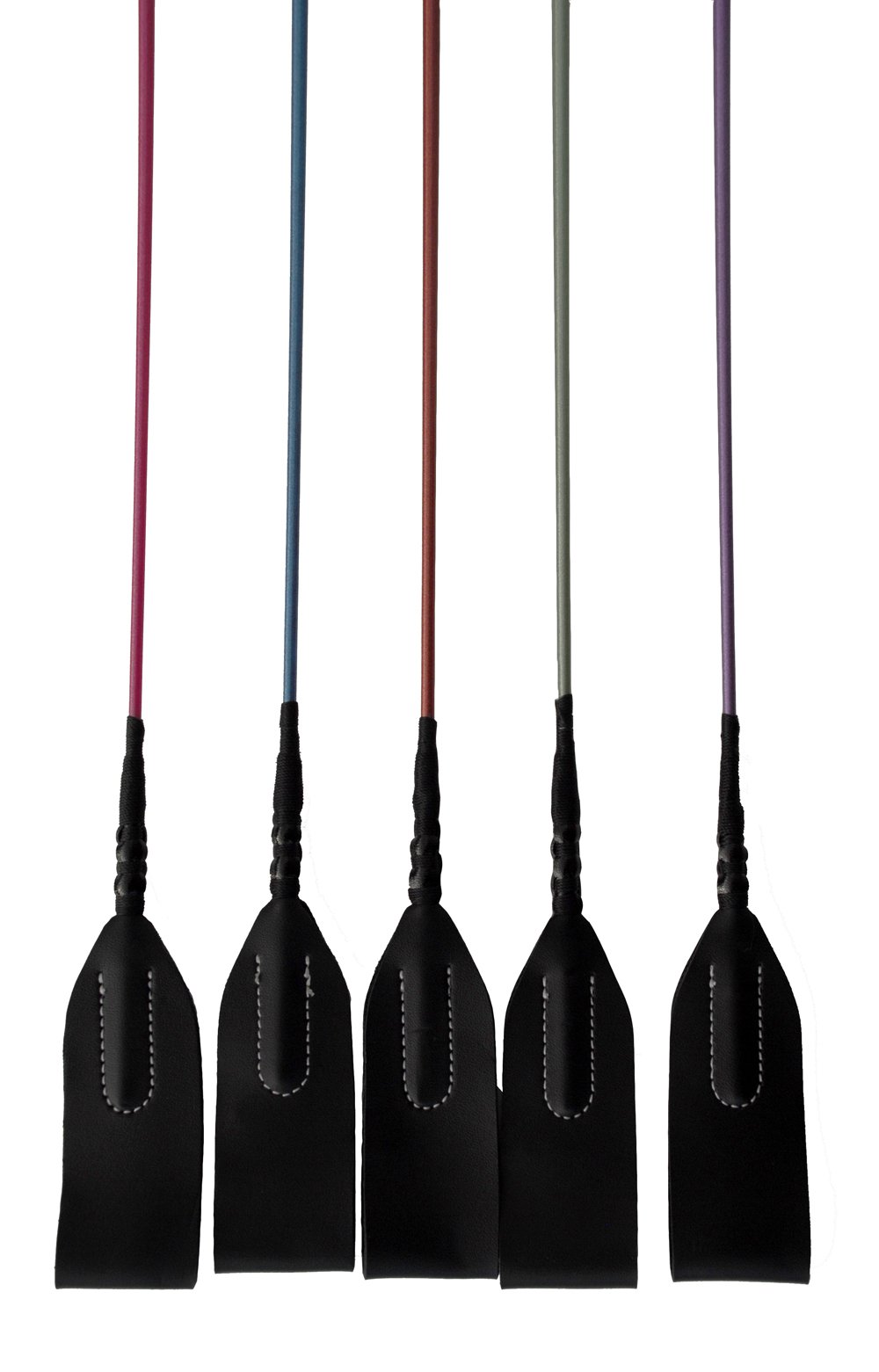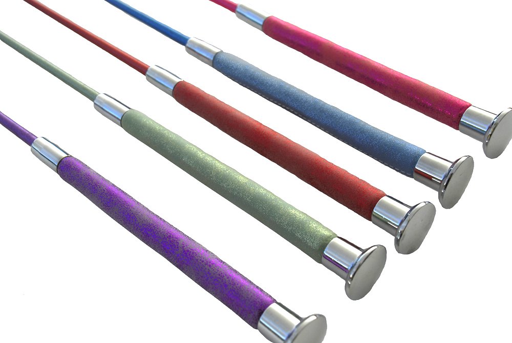 Our horse riding crops are made complete by their pearlised handle and silver coloured button end.