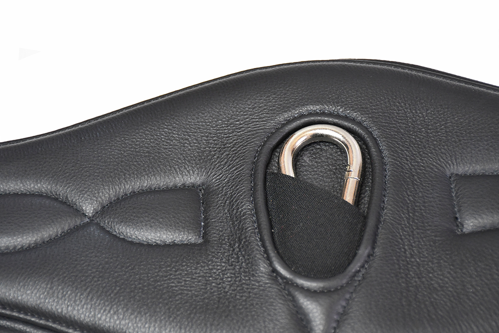 This beautifully crafted soft leather girth has a memory foam inner for extreme comfort and flexibility. Coupled with the softest leather lining and its’ contoured shape to allow space behind the horses elbow and maximum room in the air if jumping. There are triple layers of firm elastic each end for movement and comfort purposes. The girth features an integrated carabina clip for easily attaching a breastplate, martingale or other training aid.