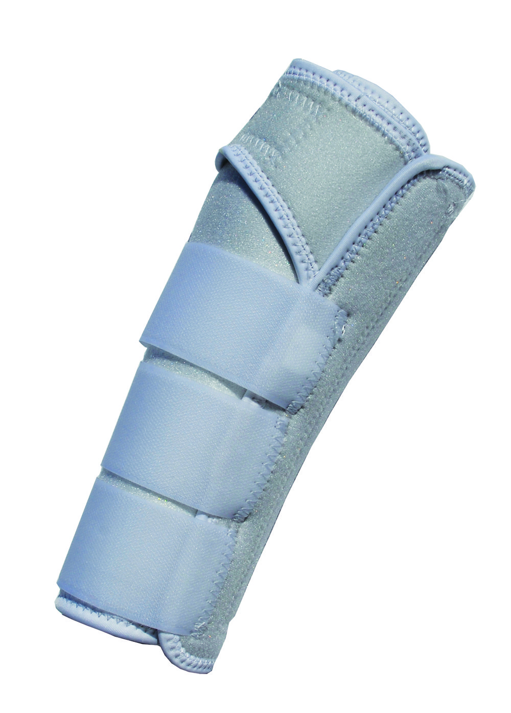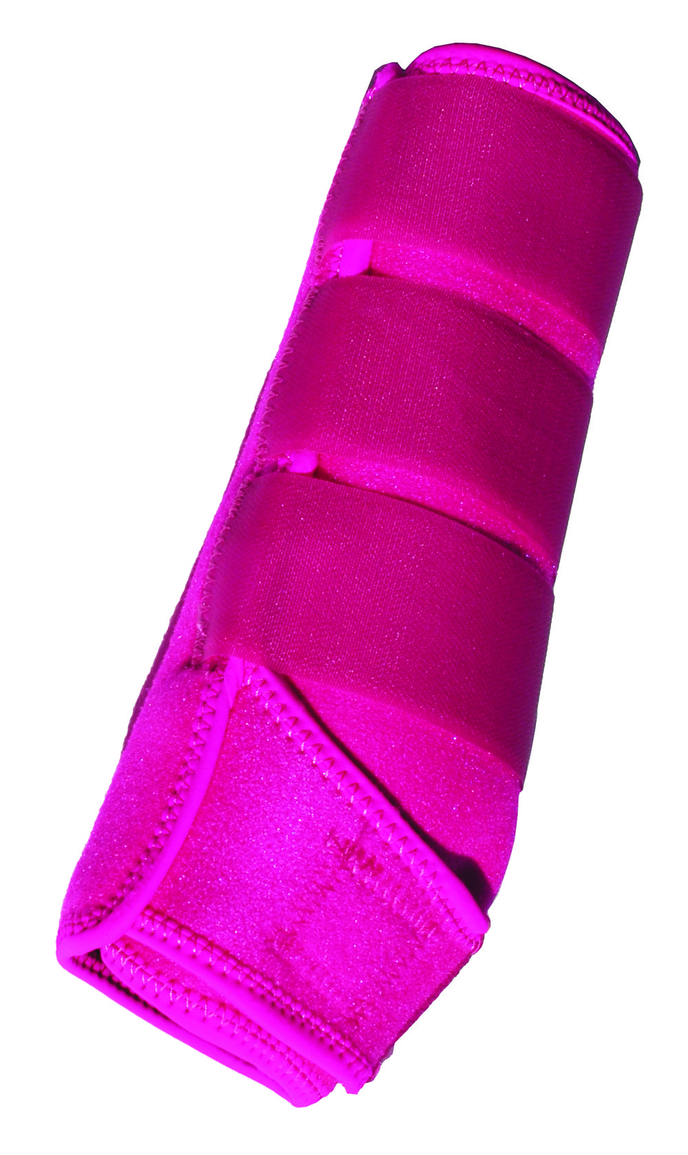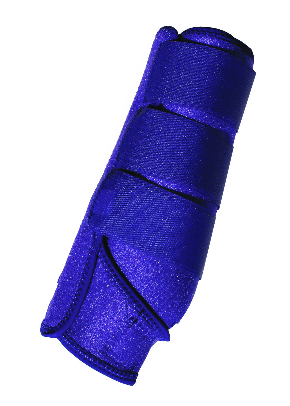 Neoprene support boot with soft textured outer, four wide strap touch tape fastening for ease of use and full fetlock support. A quicker alternative to bandaging offering full ligament support designed for front or hind leg use.