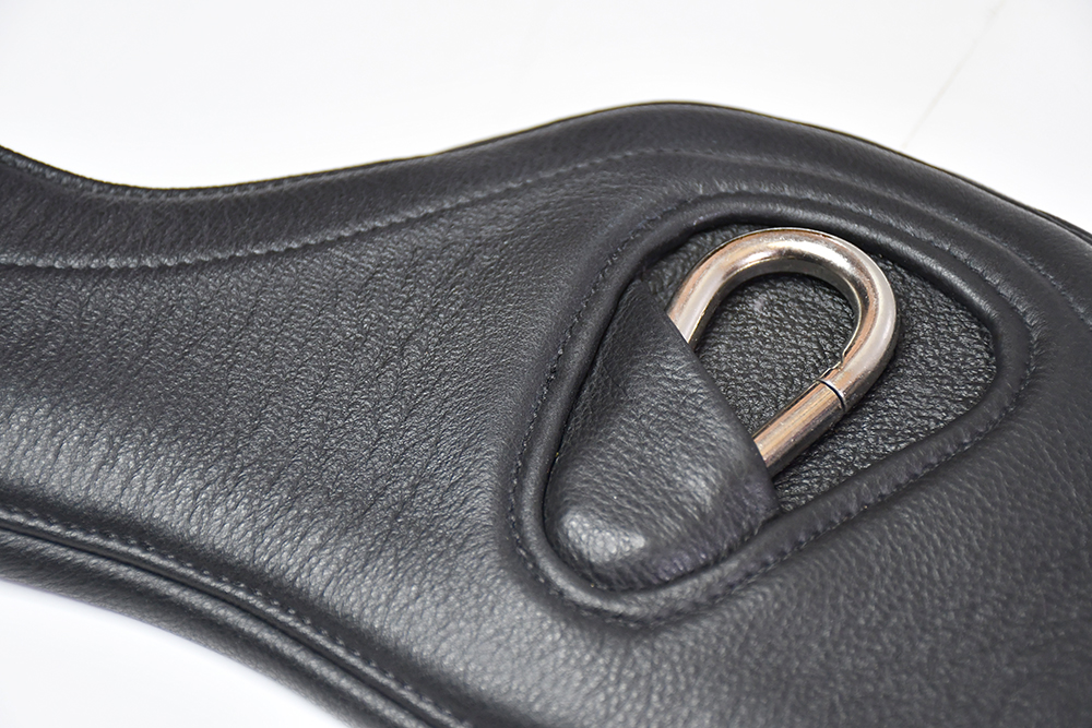 This beautifully crafted soft leather girth has a memory foam inner for extreme comfort and flexibility. Coupled with the softest leather lining and its’ contoured shape to allow space behind the horses elbow and maximum room in the air if jumping. There are triple layers of firm elastic each end for movement and comfort purposes. The girth features an integrated carabina clip for easily attaching a breastplate, martingale or other training aid.