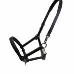 Beautiful slim leather halter/slip with fully padded crown and noseband. The headpiece is adjustable from the offside with an easy clip attachment on the nearside. There is also a trigger clip to the throat and the noseband is adjustable from the back with a small ring for attaching a leadrope.
